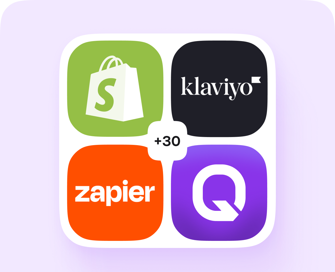 Integrations with Klaviyo, Yotpo, Mailchimp, OmniSend, HubSpot, and more.
