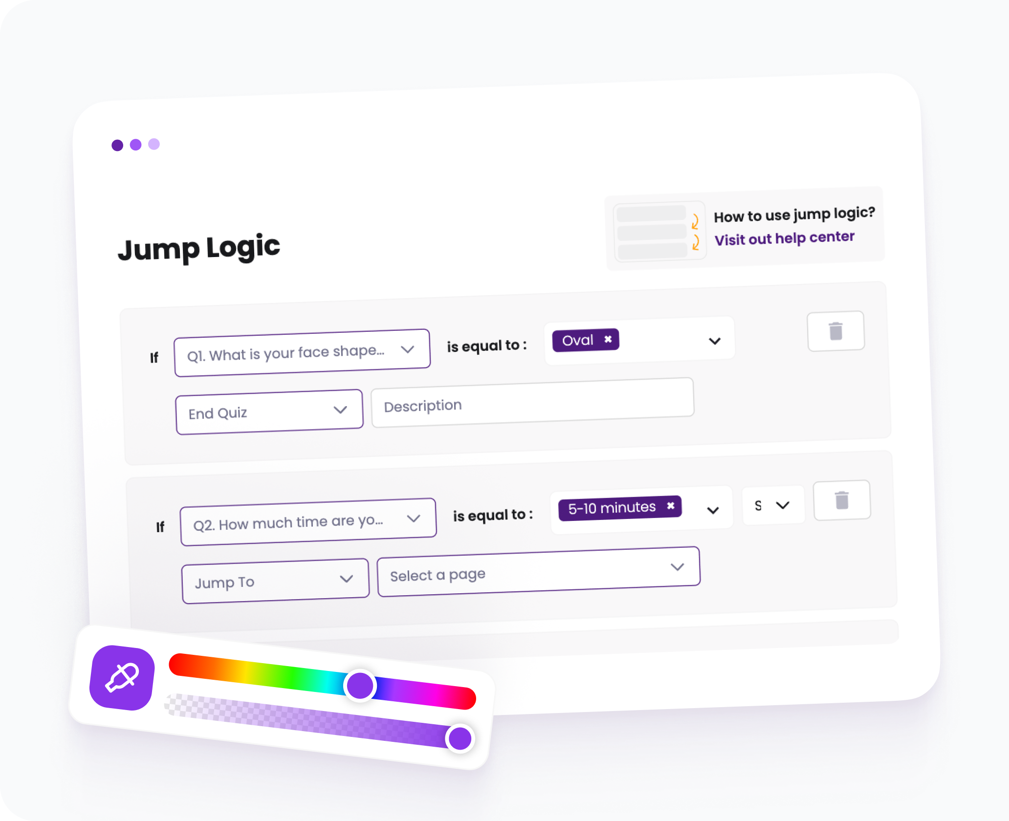 Use our drag-and-drop editor to create questions based on height, weight, fit preference, body shape, and more.