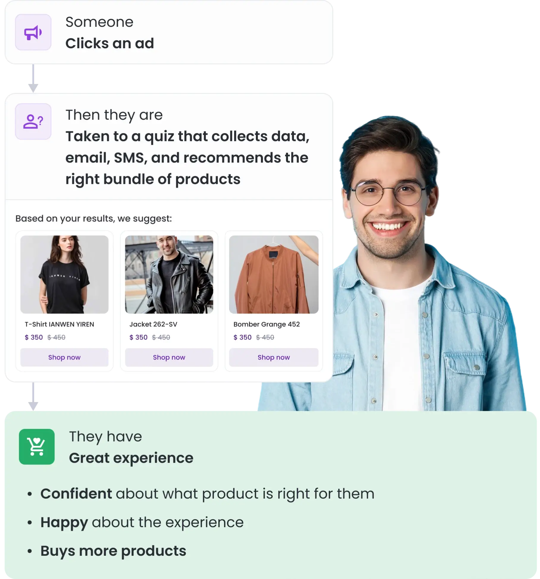 Help your customers find what they need - faster. With our Product Recommendation Quiz, guide each visitor to their ideal purchase through a fun, personalized experience that boosts confidence and drives conversions.