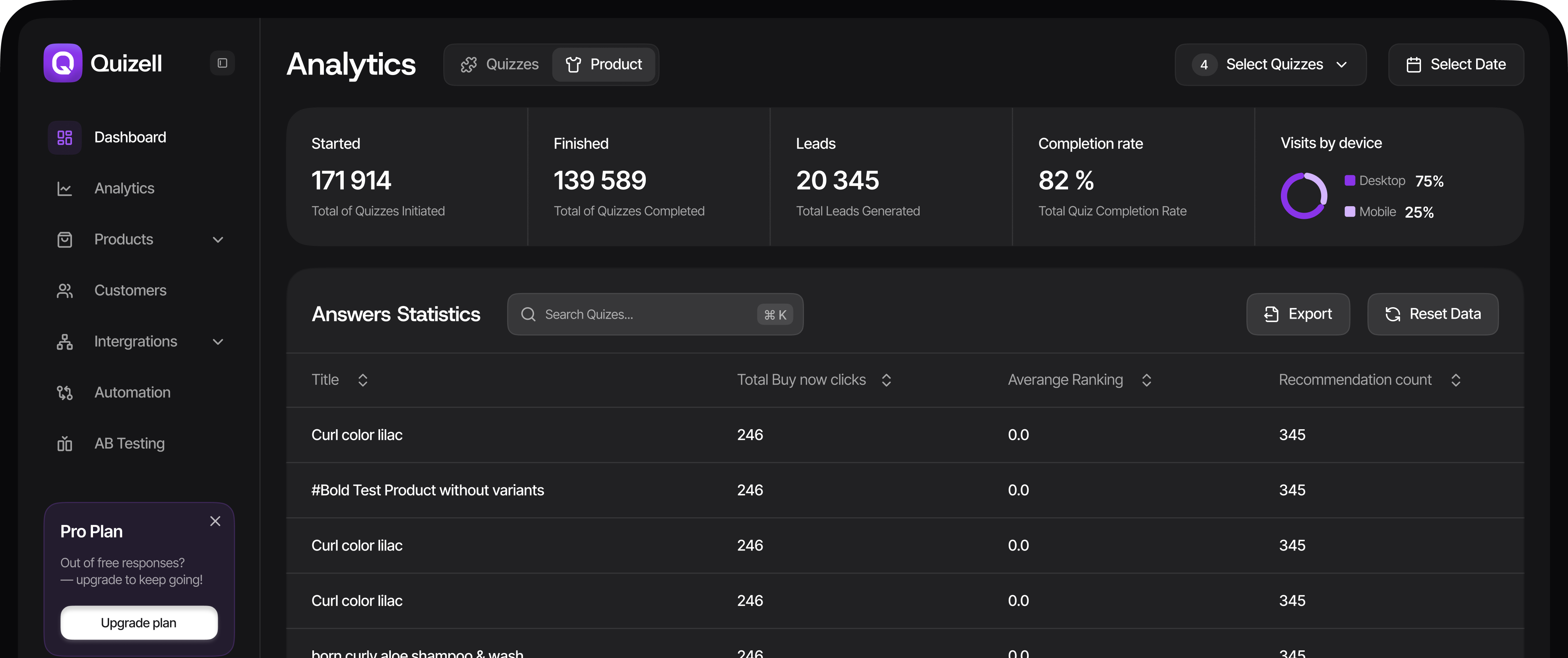Quizell Enterprise gives you the tools, performance, and support required to operate complex funnels across teams, markets, and high-traffic environments.